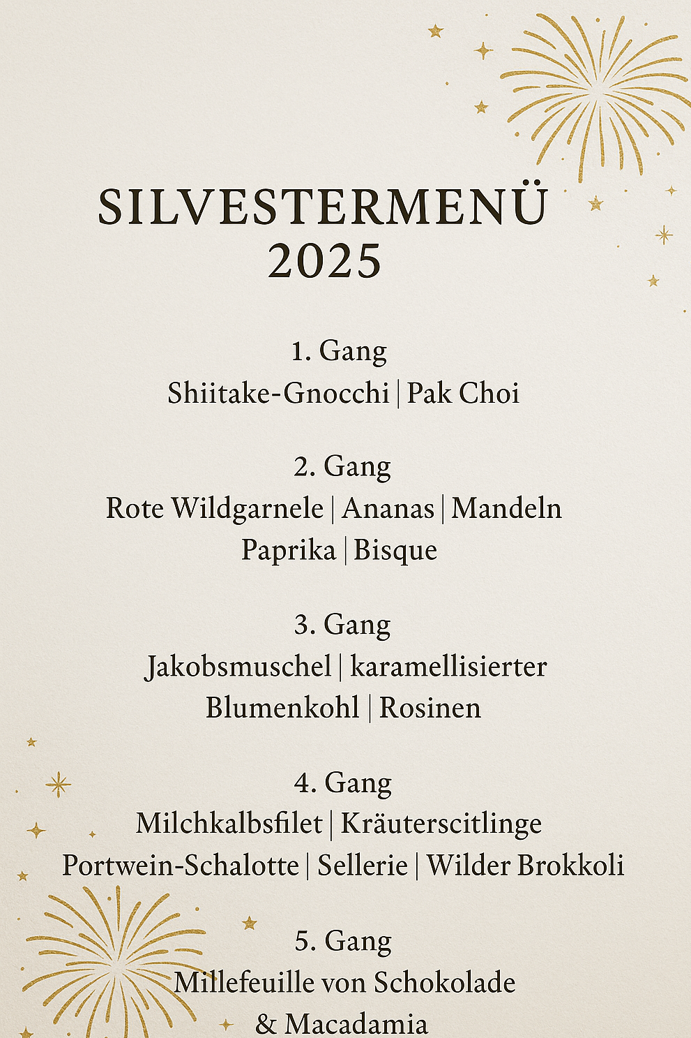 5-Gang-Silvestermenü, das den Abend kulinarisch unvergesslich macht.